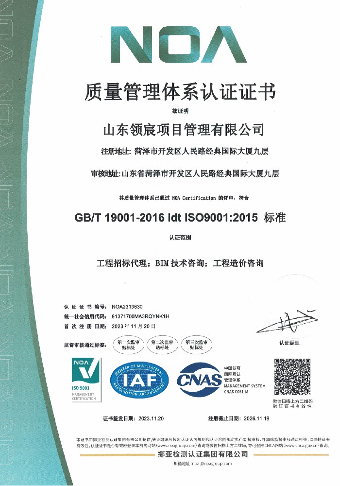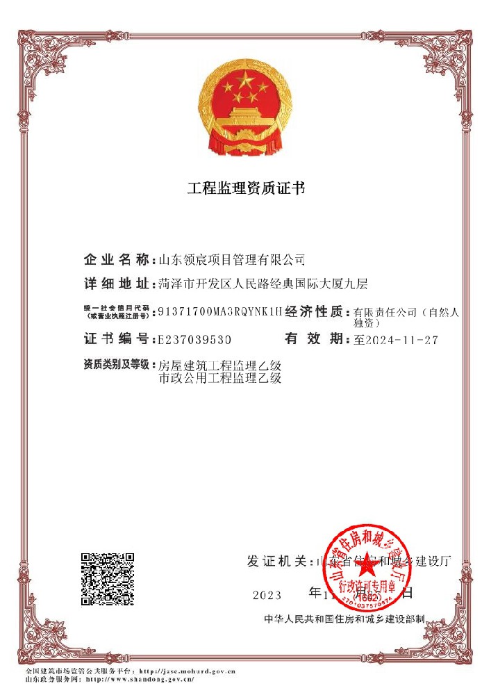 山東領宸項目管理有限公司是一家以全過程工程咨詢?yōu)楹诵牡淖稍兎展荆竟粳F具備工程造價咨詢乙級資質,房屋建筑工程、市政工程監(jiān)理乙級資質和招標代理備案。公司擁有專業的工作團隊及豐富的行業經驗,在行業領域內具有雄厚的實力,企業管理人員擁有行業20年以上的資深行業工作經驗。公司現有專業技術人員50余人,具有一級注冊造價工程師、注冊監(jiān)理工程師、一級注冊建造師、二級注冊建造師、招標師等工程類國家注冊執(zhí)業資格證書人員合計30余人以及高級工程師3人,持證上崗率達到90%......